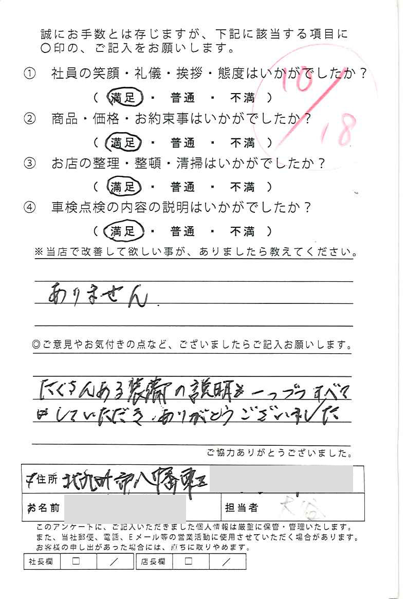 お客様の声(販売)※当店で改善してほしい事がありましたら教えてください。