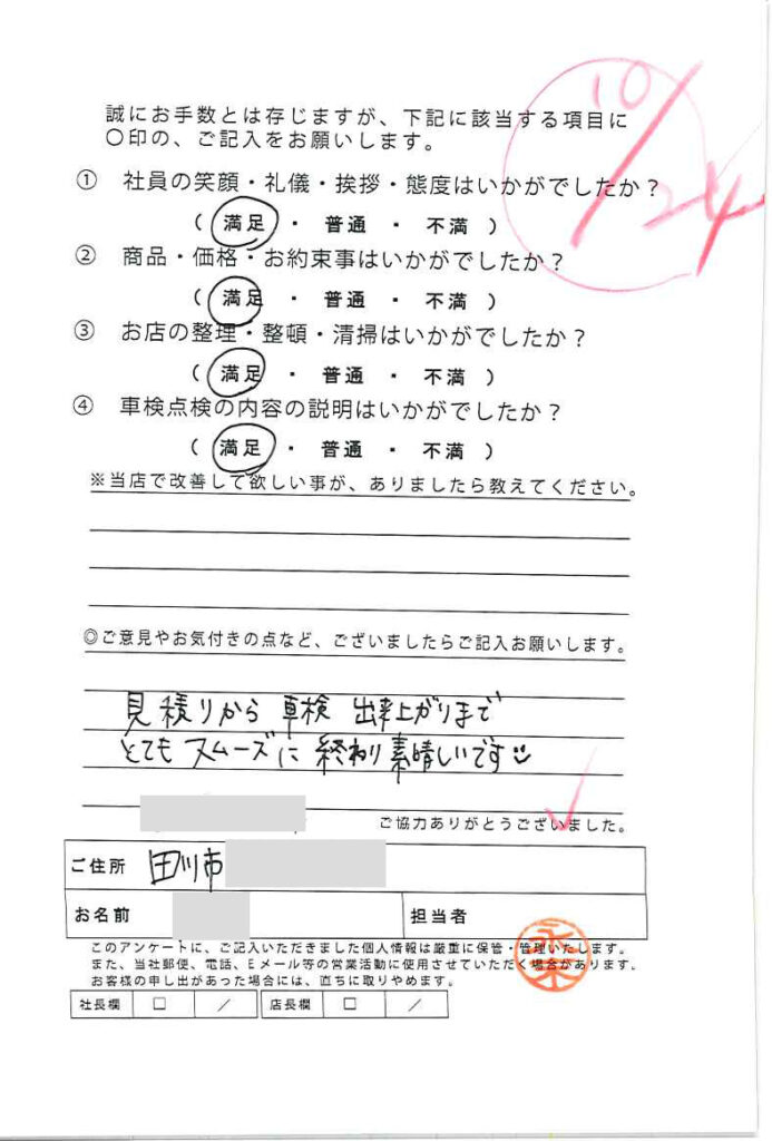 見積りから車検出来上がりまで、とてもスムーズに終わり素晴らしいです。
