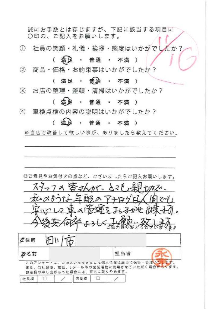 お客様の声(車検・整備)※当店で改善してほしい事がありましたら教えてください。
