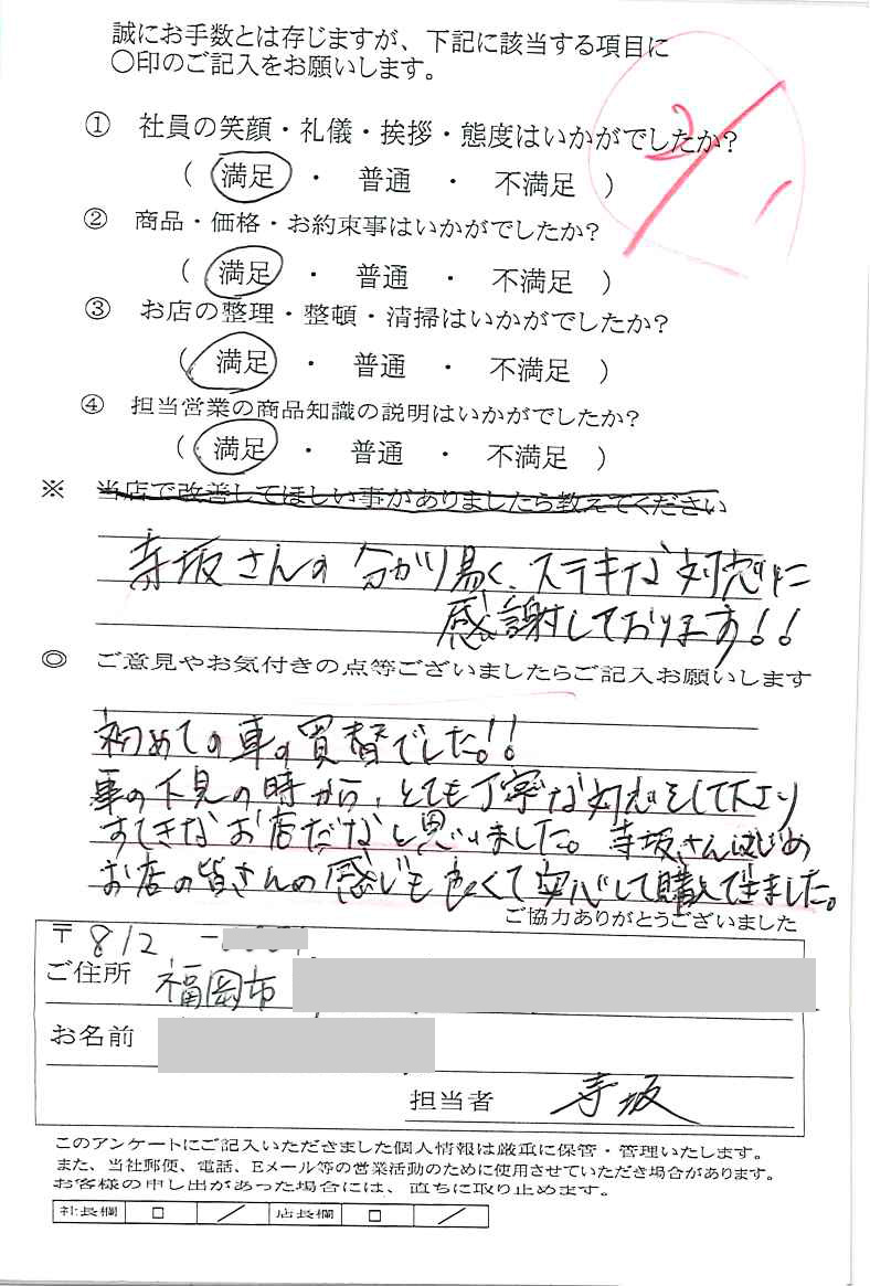 寺坂さんはじめお店の皆さんの感じも良くて安心して購入できました。