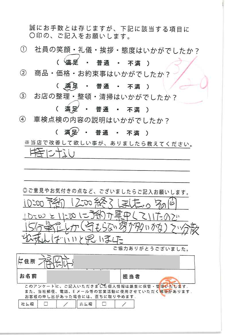 お客様の声(車検・整備)