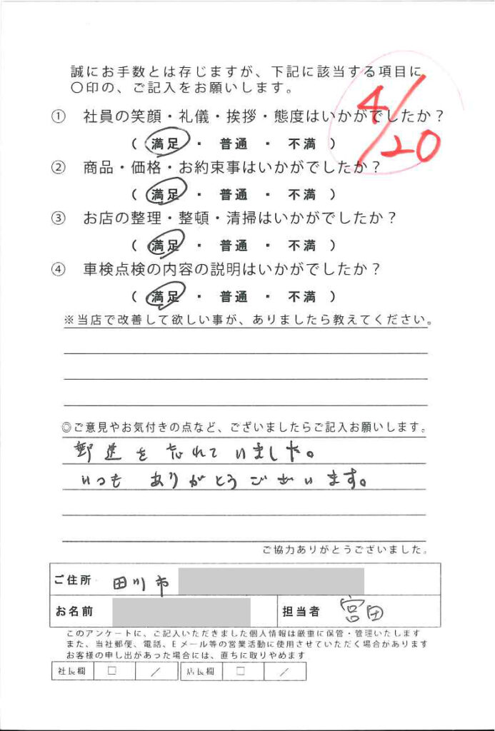 • 車検点検の内容の説明はいかがでしたか?【満足