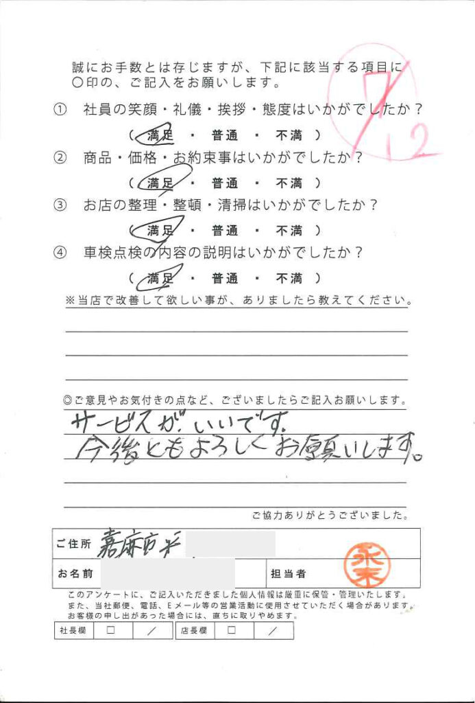 お客様の声(車検・整備)※当店で改善してほしい事がありましたら教えてください。