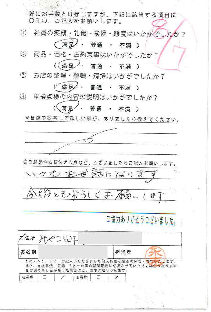 - 車検点検の内容の説明はいかがでしたか?【満足】